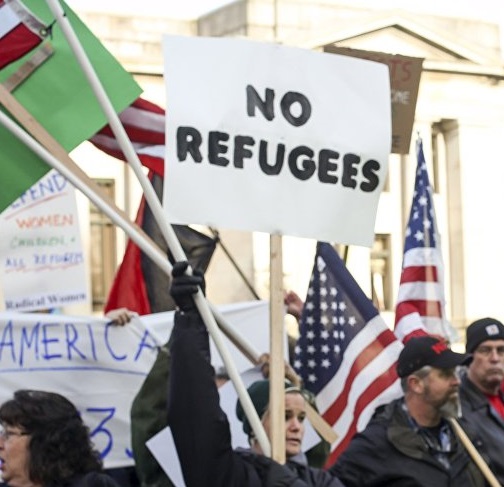 American protesters are greeting the Syrians with some hate and bigotry, so that the refugees from the civil wars and sectarian violence would feel right at home.